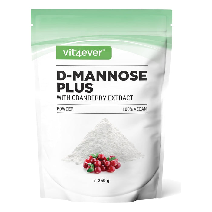 Vit4ever D-Mannose Plus met cranberry-extract is een krachtig en natuurlijk voedingssupplement in poedervorm. Elke dosering biedt een hoogwaardige combinatie van maar liefst 2000 mg zuivere D-Mannose en 500 mg geconcentreerd cranberry-extract, dat 5% waardevolle proanthocyanidines (PAC) bevat.