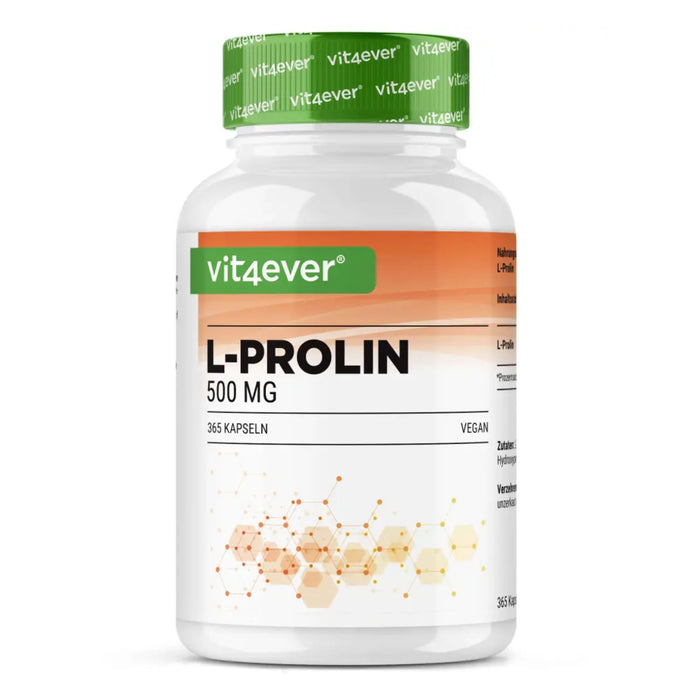 L-Proline is een niet-essentiële aminozuur die het lichaam zelf kan aanmaken, maar waarvan suppletie in bepaalde gevallen toch wenselijk is. Het aminozuur komt van nature voor in zowel plantaardige als dierlijke eiwitbronnen en is een structureel onderdeel van lichaamseigen eiwitten. Vit4ever L-Proline bevat een zuivere, gefermenteerde vorm van dit aminozuur in een handige capsulevorm – zonder vulstoffen of overbodige toevoegingen. Dankzij de hoge dosering en plantaardige capsules is dit supplement geschikt voor iedereen die zijn aminozuurprofiel gericht wil ondersteunen.